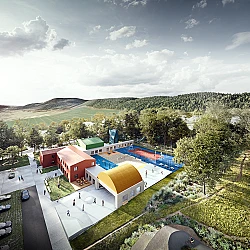 We propose to preserve and complement the landscape character, the specific architecture, and the building layout, as well as the modest transport solution. We respect the division into the protected, flat square area and the free activity space in the surrounding nature. We consider it appropriate to develop outdoor activities, as this is a local, established characteristic. We think about how to maintain everyday use, regardless of weather or season.