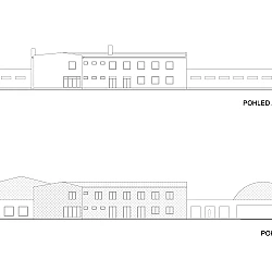 A square area in a terrain excavation. Periphery, overgrown meadow. A sad building. Courtyards, long corridors, low gun slits, walls without windows. Utilitarian transport solutions. Yet, we are not demolishing, but recycling and complementing. A change that is understandable to everyone – develop what is functional, color the gray, open the closed.