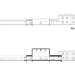 Čtvercová plocha v terénním zářezu. Periferie, zarostlá louka. Smutná budova. Dvory, dlouhé chodby, nízké střílny, stěny bez oken. Utilitární dopravní řešení. Přesto nebouráme, ale recyklujeme a doplňujeme. Všem srozumitelná změna - rozvinout co je funkční, obarvit šedivé, otevřít zavřené.