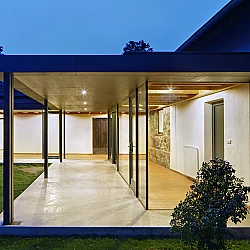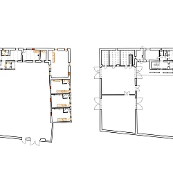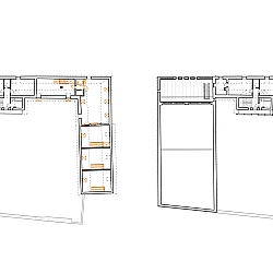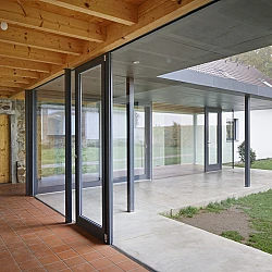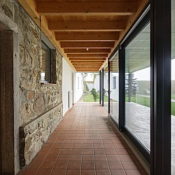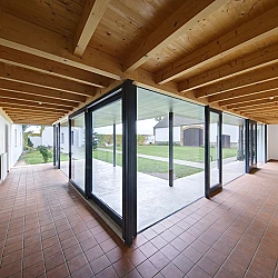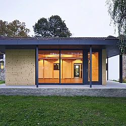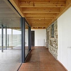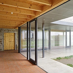 Our strategy was to make the latest intervention clearly recognizable, but in function, detailing and materials, we wanted the old and new to remain linked. New volumes are wooden structure with light glass walls and spruce formwork or dark plywood cladding. We proposed local terracotta tiles for all floor finishes.
