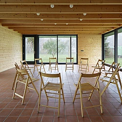 Komunitní místnost slouží pro pravidelnou skupinovou terapii a symbolicky vybíhá do sadu mimo obrys usedlosti. Má pro komunitu zvláštní význam, důležitý je motiv kruhu při uspořádání židlí nebo jako osvětlení na stropě. Chodba je neformální místo pro setkávání a denní provoz. Má vnitřní prosklený prostor a vnější krytý ochoz. Pro život komunity je důležité společné jídlo. Pokrmy připravují sami klienti. Jídelna je umístěna v rohu usedlosti, kde se zachovalo kamenné zdivo původního statku.