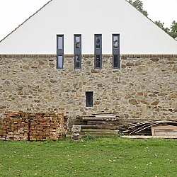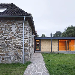 Zemědělská usedlost je patrná už na mapách z let 1764-1768. Leží na samotě mezi dvěma koryty řeky Blanice v jižních Čechách. V letech 1995 a 2005 proběhly dvě přestavby, které nenávratně překryly starší vrstvy a členění objektu. Celkově byl objekt v přijatelném stavu, proto jsme se s investorem soustředili na hledání optimálního provozního řešení a nově dostavěné hmoty.