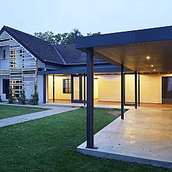Potřebné prostory komunity nebylo možné do původního objektu umístit. Z toho důvodu je ve dvoře přistavěná spojovací chodba a komunitní místnost stojí vně půdorysu usedlosti. Bydlení terapeutů i klientů, jídelna s kuchyní, klubovna, kancelář a ordinace, technické a provozní místnosti, jsou v původních stavbách. Dostavěné prostory jsou dřevostavby a mají shodné konstrukční a materiálové řešení. Společné místnosti a prostory jsou propojeny materiálem podlahy – cihelnou dlažbou.