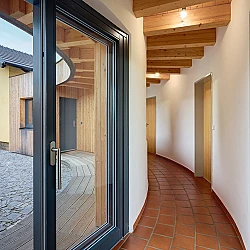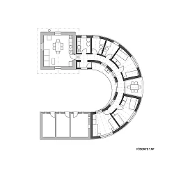 Stavba je jednopodlažní. Může zde bydlet 6 osob, hospodářskou část využívá i komunita. Místnosti jsou propojeny chodbou, která obíhá kolem dvora a je přerušena terasou s výhledy do dvora a sadu. Klienti mají k dispozici společnou kuchyni a jídelnu v drážním domku, původní příčky a půda jsou zrušeny, prostor je otevřený do krovu. Obytná část domu zahrnuje tři dvoulůžkové pokoje s hygienickým a technickým zázemím.