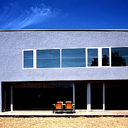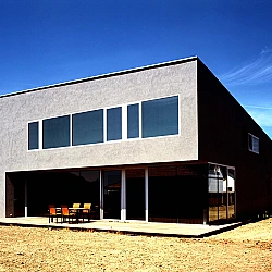Jednoduchému tvarování domu odpovídá i jeho strohý vzhled. Geometrický objem dynamizuje pouze zářez terasy a zkosený vstup. Okna obytných místností jsou osazena v líci fasády a mají reflexní zasklení kvůli větší intimitě a omezení přehřívání interiéru.